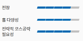 - 특징: 샷밸류 우수, 폭넓은 페어웨이, 다양한 홀 배치