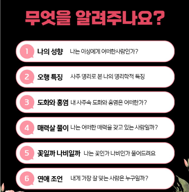 ✔ 도화살 유무 + 강도 + 시기까지 분석