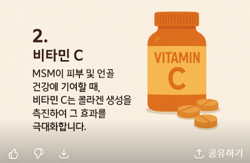 MSM은 단독으로도 훌륭한 효능을 발휘하지만, 특정 영양소와 함께 섭취하면 더욱 강력한 시너지 효과를 기대할 수 있습니다.
