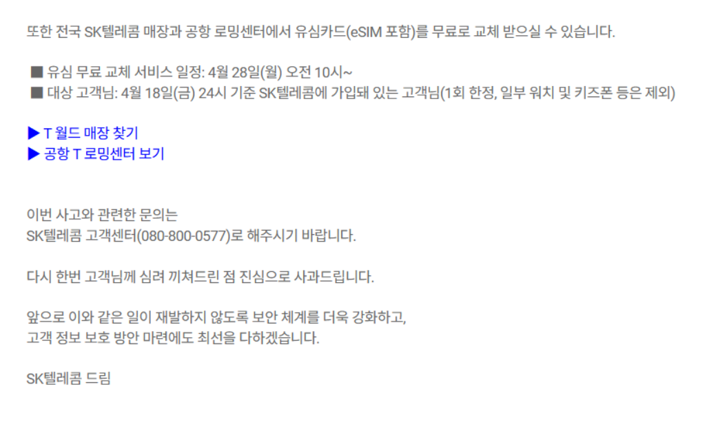 혹시 모를 피해를 빠르게 막고 싶다면 유심 재발급 받기를 추천드립니다.
